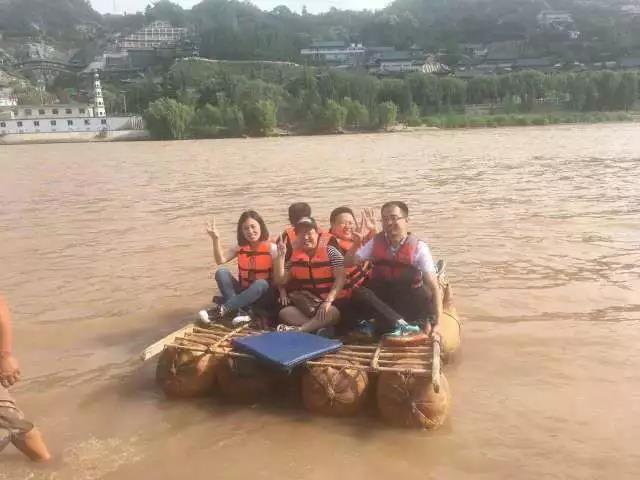 我们五人一组,乘坐羊皮筏子在黄河中顺流而下,水流缓时,需要用桨划水前行;水流急时,则任筏子顺水漂流,时不时用桨控制方向;水浪拍打筏子时,筏子摇摇晃晃,惊险刺激,真是一场别样的体验。