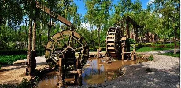 在水车博览园,我们看到了大小不一的各式水车。兰州水车由明代兰州人段续所创,后经四百余年不断改进而日臻完善,水车构造精巧、工艺精湛,以河水为动力,以水斗为提水工具,使干旱少雨的兰州黄河两岸的农田得以灌溉滋养。园内渠水蜿蜒、水车旋转,各种花草树木错落有致,再现了黄河、水车与农业生产的和谐景象。